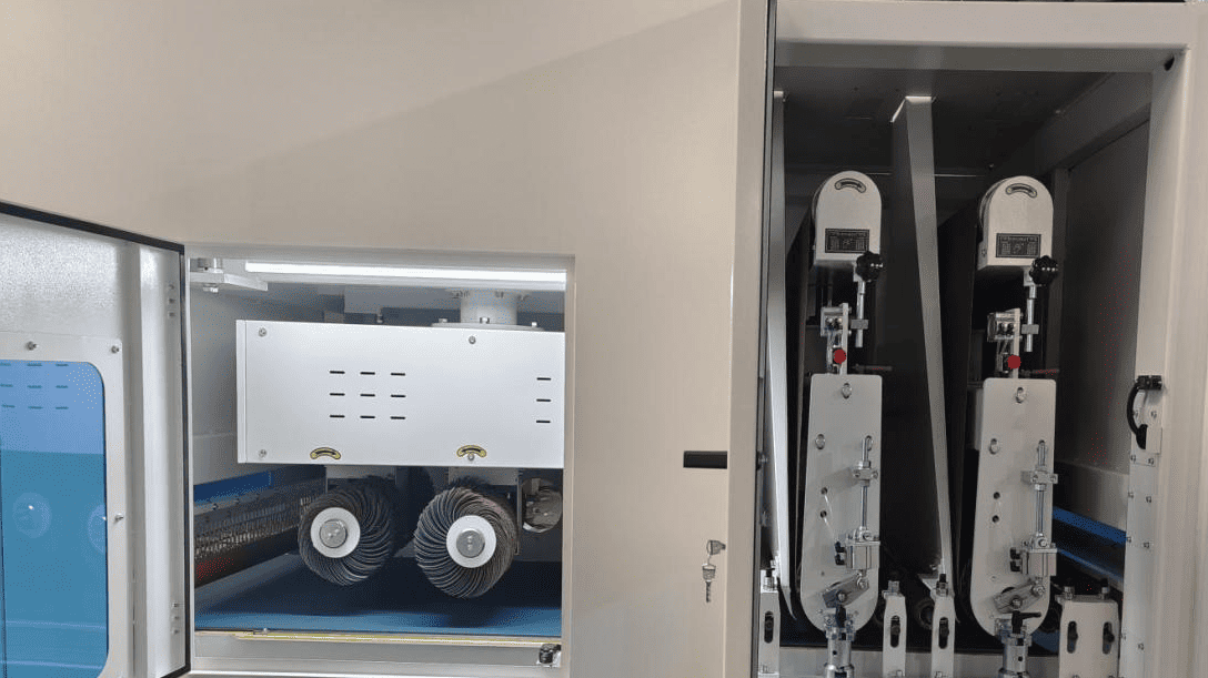 Шамалы және камера машинасы арнайы метеорлы болат компоненттерін беттік өңдеуге арналған. Ол кері бұрылу үшін кең абразивті белдіктердің екі жиынтығының инновациялық комбинациясы және төрт әмбебап айналмалы щеткалармен ерекшеленеді. Бұл дизайн жиектер мен беттік щеткаға қол жеткізу кезінде бетті борандарды тиімді және дәл жоюды қамтамасыз етеді, сонымен қатар, беттің сапасы мен дайындаманың сыртқы келбетін едәуір жақсартады. Шығарылатын және щетка машина өндіріс тиімділігі мен өнімнің құндылығын арттыру, түрлі салалардағы көміртегі метонының беткі қабатының дәлдігі мен сапасына сәйкес келеді. Параметрлерді өңдеудің әр түрлі қажеттіліктеріне сәйкес реттеуге болады және сәйкес абразивтідарды сәйкесінше таңдауға болады. Металлдарды кері қайту машинасы 5,5 кВ суланған шаң жинағышымен жабдықталған. Шаңды кетіру әдісі: жұмыс кезінде пайда болатын шаң шаң жинау порты арқылы тиімді түрде алынады, шаңды жинап, шаңды төгу қаупі бар және ішкі құрылымды таза ұстау.